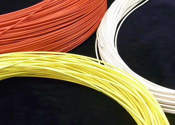 絶縁体に各種のフッ素樹脂(PTFE・PFA・FEP・ETFE)を用いた高信頼性電線です。電気的特性、耐熱、耐油、耐薬品性などに優れ、厳しい環境に対応できる強い特性を備えており、熱機器・コンピューター・通信機器・自動車電装等の内部配線として使用されています。 可とう性を必要とする用途には、可とう性フッ素樹脂を使用し、フッ素樹脂の持つ耐熱性、耐油性、電気特性を損なうことなく可とう性を大幅に改良したタイプもあります。