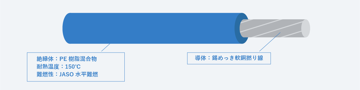 - AEX、AESSX等のPE樹脂電線より柔軟性や接着性に優れます。